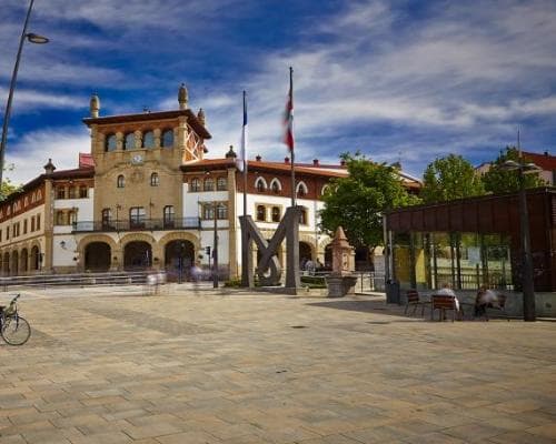 Situada en un templado valle cerca de la costa, y muy bien comunicada con Bilbao y el aeropuerto de Loiu, esta localidad se encuentra en constante crecimiento tanto en el sector industrial como en el terciario. El municipio está compuesto por un núcleo de población principal y nueve barrios con personalidad propia, y cuenta con diversos tesoros arquitectónicos que merecen ser visitados. Entre la arquitectura civil, destacan dos edificios: el ayuntamiento, una bella construcción con elementos barrocos y góticos y un amplio soportal con arcos de medio punto, y la antigua casa-torre de Torrebillela. De origen medieval, ha sido reconstruida en numerosas ocasiones y hoy en día alberga la casa de cultura. Aunque, sin lugar a dudas, la Fuente de la Concordia es uno de los monumentos más emblemáticos del municipio. Situada junto a Torrebillela, es el símbolo de la concordia, el acuerdo y el diálogo. En cuanto al patrimonio religioso, hay que mencionar la iglesia gótica de San Pedro, reconstruida en el siglo XVI y remodelada en numerosas ocasiones a lo largo de su historia. Si nos adentramos en los alrededores del pueblo, encontraremos multitud de templos en los barrios que forman el municipio. Por ejemplo, la ermita de San Miguel de Zumetzaga, situada en las faldas del monte Jata (600 m) y rodeada por un bosque de robles, es una de las joyas del románico. De planta rectangular, destaca por el vano del ábside, que hacia el exterior aparece decorado con doble arquivolta.